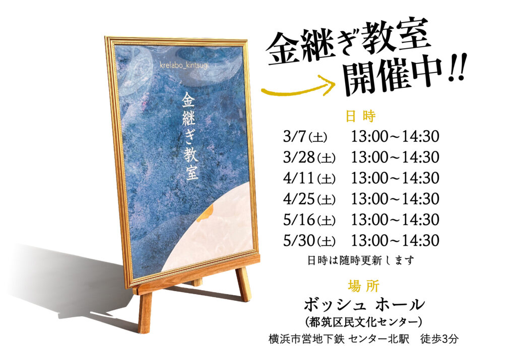 はじめての方はもちろん、簡易金継ぎで直したものを本金継ぎでやり直したい、未完成の金継ぎを完成させたい、ご自身で金継ぎをされていて少しだけ習いたい等、ご自分のご都合に合わせて1回から参加できますのでお気軽にお問い合わせください。