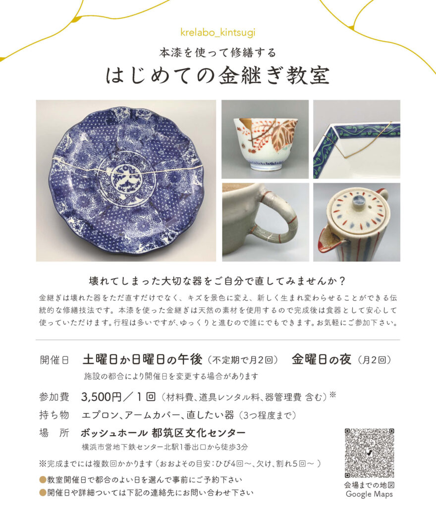 krelabo_kintsugiでは接着剤やエポキシパテなどを使わない本漆を使った伝統的な金継ぎでお直しいたします。
